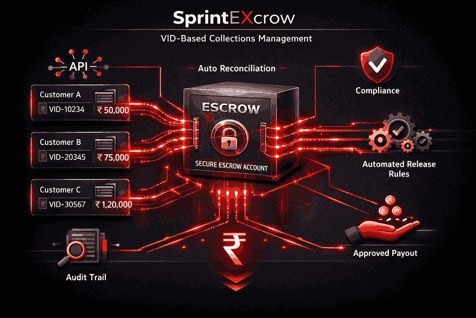 Traditional collections mix funds across transactions, creating reconciliation nightmares with manual matching across bank statements. VID Collection solves this by provisioning unique IDs per escrow deal, guaranteeing traceability from deposit to release. For PaySprint's SprintEXcrow users, this means faster audits, reduced disputes, and RBI-compliant nodal management in COD-heavy or multi-party flows.